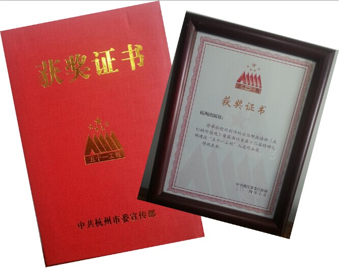 在杭州市第十二届精神文明建设“五个一工程”评选中,杭州出版集团报送的通俗理论读物《我们的价值观》一部作品荣获入选作品奖。
