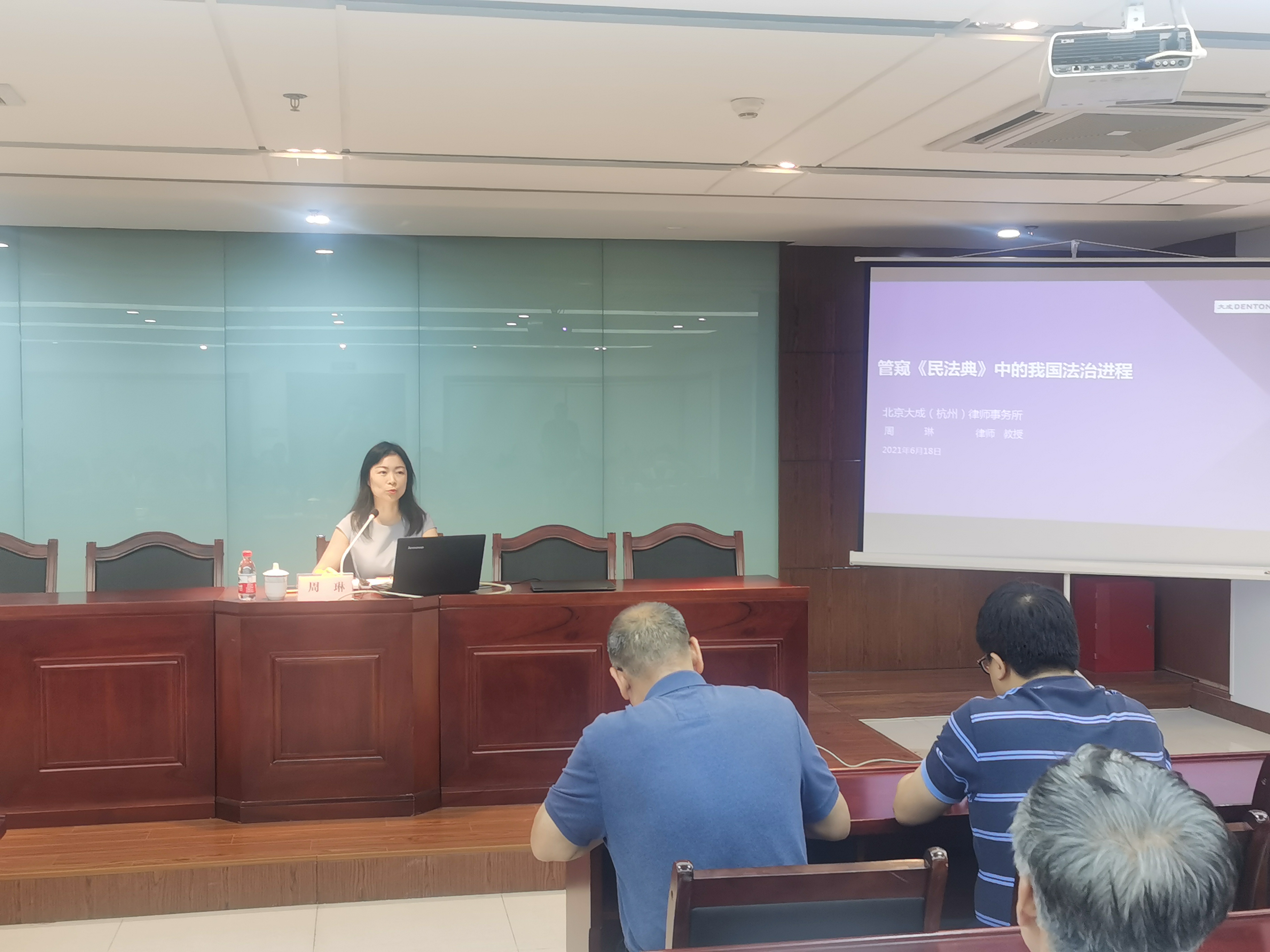 为扎实开展好党史学习教育活动,2021年6月18日下午,集团邀请法律顾问单位北京大成(杭州)律师事务所周琳教授以《管窥<民法典>中的我国法治进程》为题,为全体员工开展《民法典》知识专题培训。通过一个又一个活生生的司法案例,周律师生动阐释了《民法典》在人格权、居住权、婚姻家庭等9个方面的重要创新,着重指出,《民法典》是中国特色社会主义法律体系中一部具有重要地位的法律,是固根本、稳预期、利长远的基础性法律,对推进全面依法治国、加快建设社会主义法治国家、推进国家治理体系和治理能力现代化具有重大意义。讲座内容丰富,具有很强的针对性和指导性,提升了员工学法用法知识水平,受到大家一致好评。