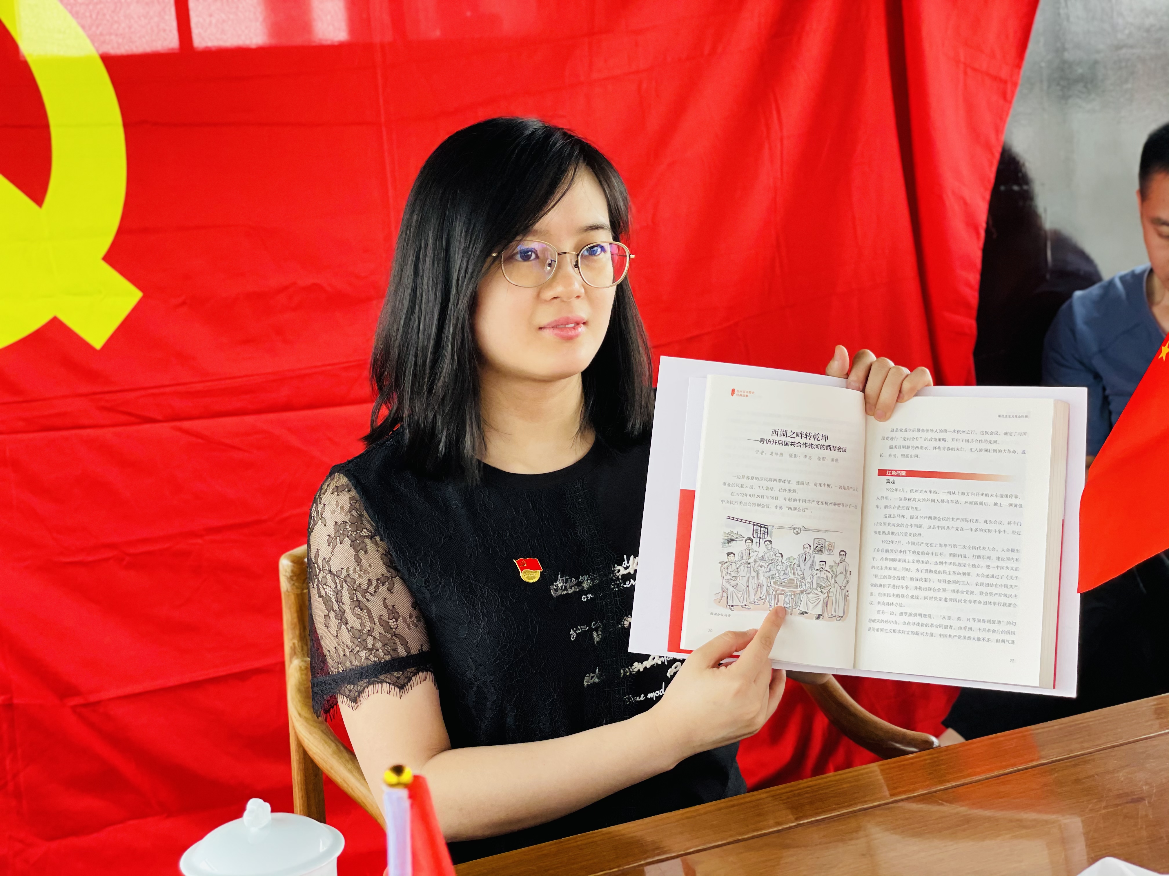 在嘉兴南湖,全体党员干部怀着无比崇敬的心情瞻仰红船,重温中共“一大”召开的背景和过程,实地感悟这段艰辛历程和共产党人在建党之初的奋斗精神。“小小红船承载千钧,播下了中国革命的火种,开启了中国共产党的跨世纪航程。”习近平总书记在瞻仰浙江嘉兴南湖红船时,留下了这样的深情讲述。一艘小小红船承载着人民的重托、民族的希望,越过急流险滩,穿过惊涛骇浪,成为领航中华民族伟大复兴的巍巍巨轮。在水上党课,党员干部们认真聆听了这段感人的党史故事,同时由支部党员胡清向大家讲述了我社编辑出版的庆祝中国共产党成立100周年主题用书《红色印记》的编辑出版过程及该书成功出版的重要历史意义。“我志愿加入中国共产党,拥护党的纲领,遵守党的章程,履行党员义务,执行党的决定,严守党的纪律,保守党的秘密,对党忠诚,积极工作,为共产主义奋斗终身,随时准备为党和人民牺牲一切,永不叛党。”在红船边,全体党员干部重温入党誓词,铮铮的誓言掷地有声、铿锵有力。