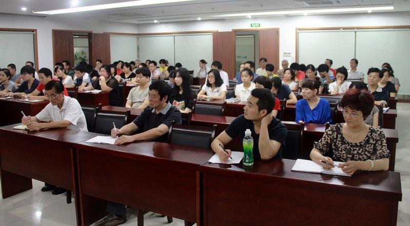 杭州出版集团的员工在认真听取、学习魏部长的讲话