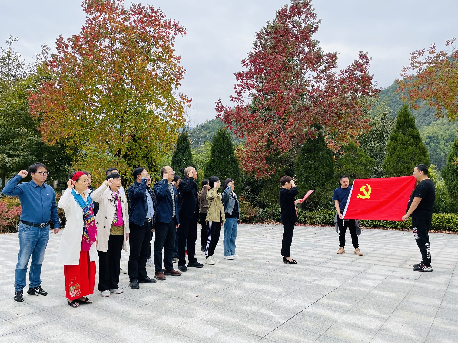 26日,全体党员走上陡峭崎岖的茶山古道,参观了茶山会议会址和方志敏等同志临时住所,切身体会到了抗战岁月的艰苦和不易,并怀着崇敬的心情瞻仰了烈士纪念碑,全体党员在碑前重温了入党誓词。