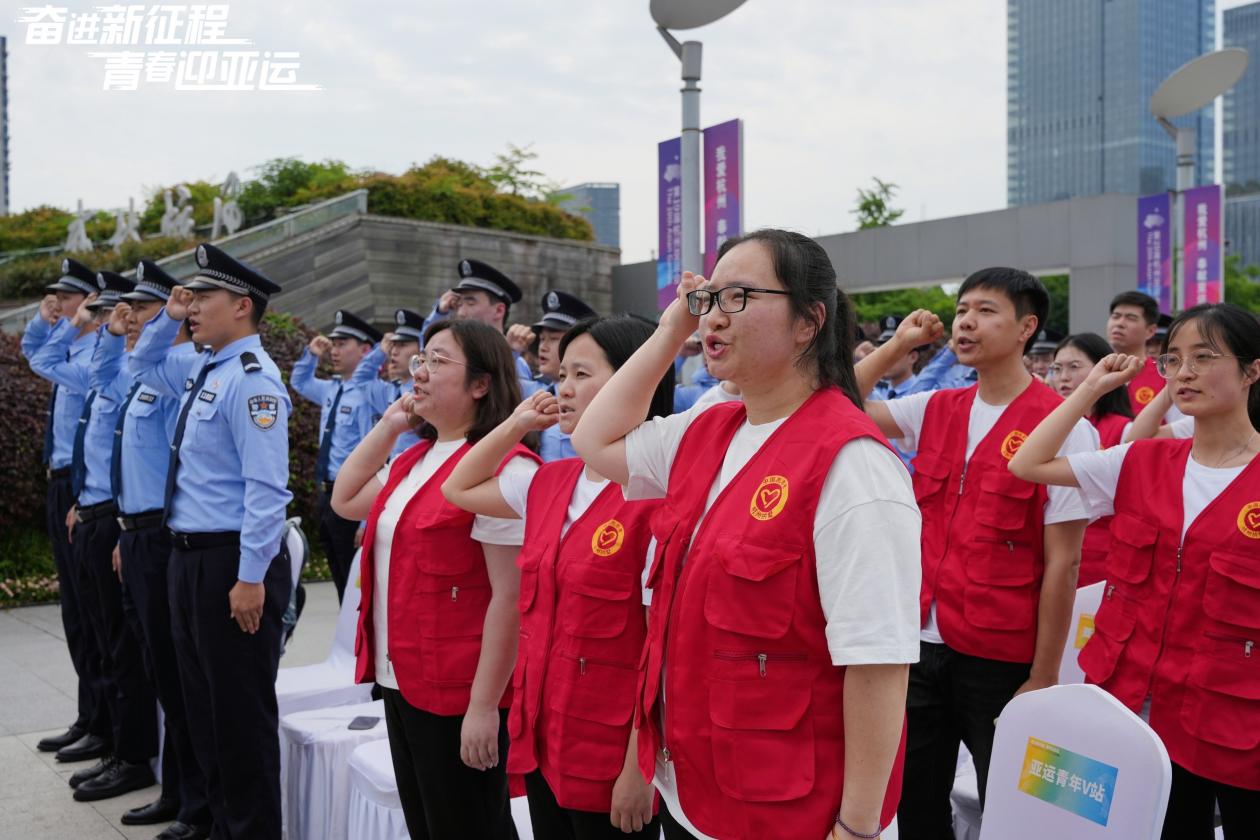 最后,亚运赛会志愿服务青年突击队、平安护航志愿服务青年突击队、亚运青年V站志愿服务突击队、运河建功青年突击队进行授旗、宣誓仪式。