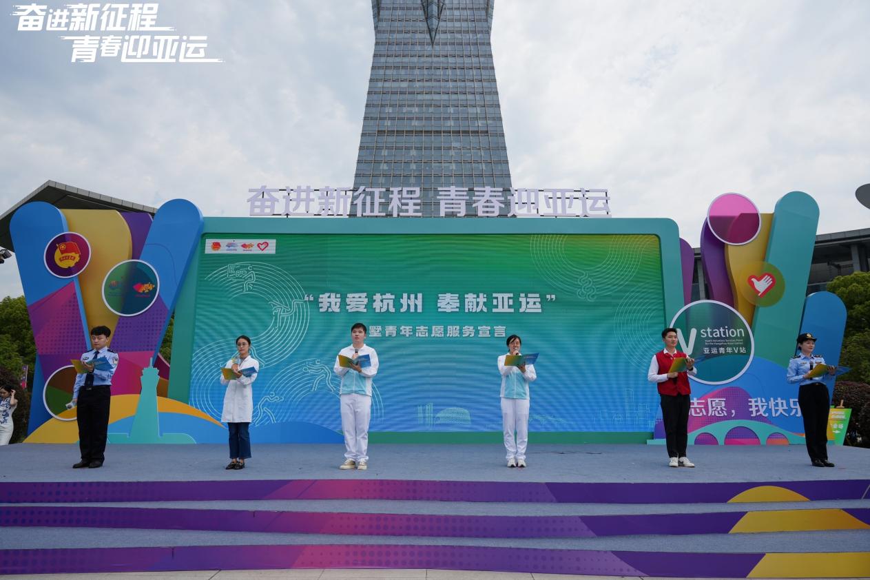 5月4日上午,由共青团浙江省委员会指导的“奋进新征程 青春迎亚运”拱墅青年亚运志愿服务誓师大会活动在西湖文化广场举办。